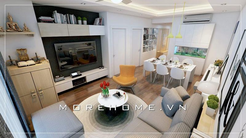 Mẫu thiết kế nội thất phù hợp với các căn phòng có diện tích vừa và nhỏ, đảm bảo sự tiện nghi và thuận tiện.