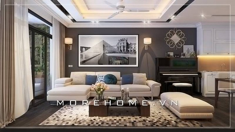 Hãy cân nhắc việc sử dụng các tông màu trung tính như xám, be hoặc trắng ngà, kết hợp với những điểm nhấn màu sắc đậm hơn qua các phụ kiện như gối tựa, tranh treo tường hay thảm trải sàn. Sự kết hợp này không chỉ tạo cảm giác thoải mái mà còn làm nổi bật sự tinh tế của không gian.